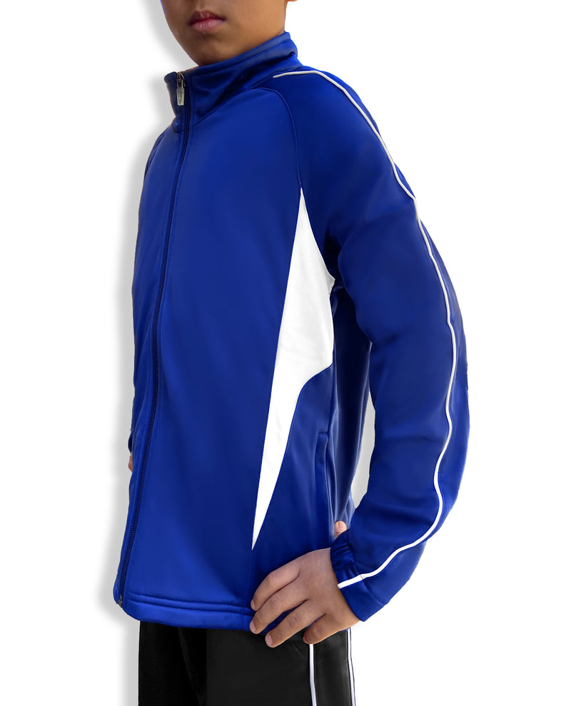 - 100% polyester brushed tricot warm-up jacket